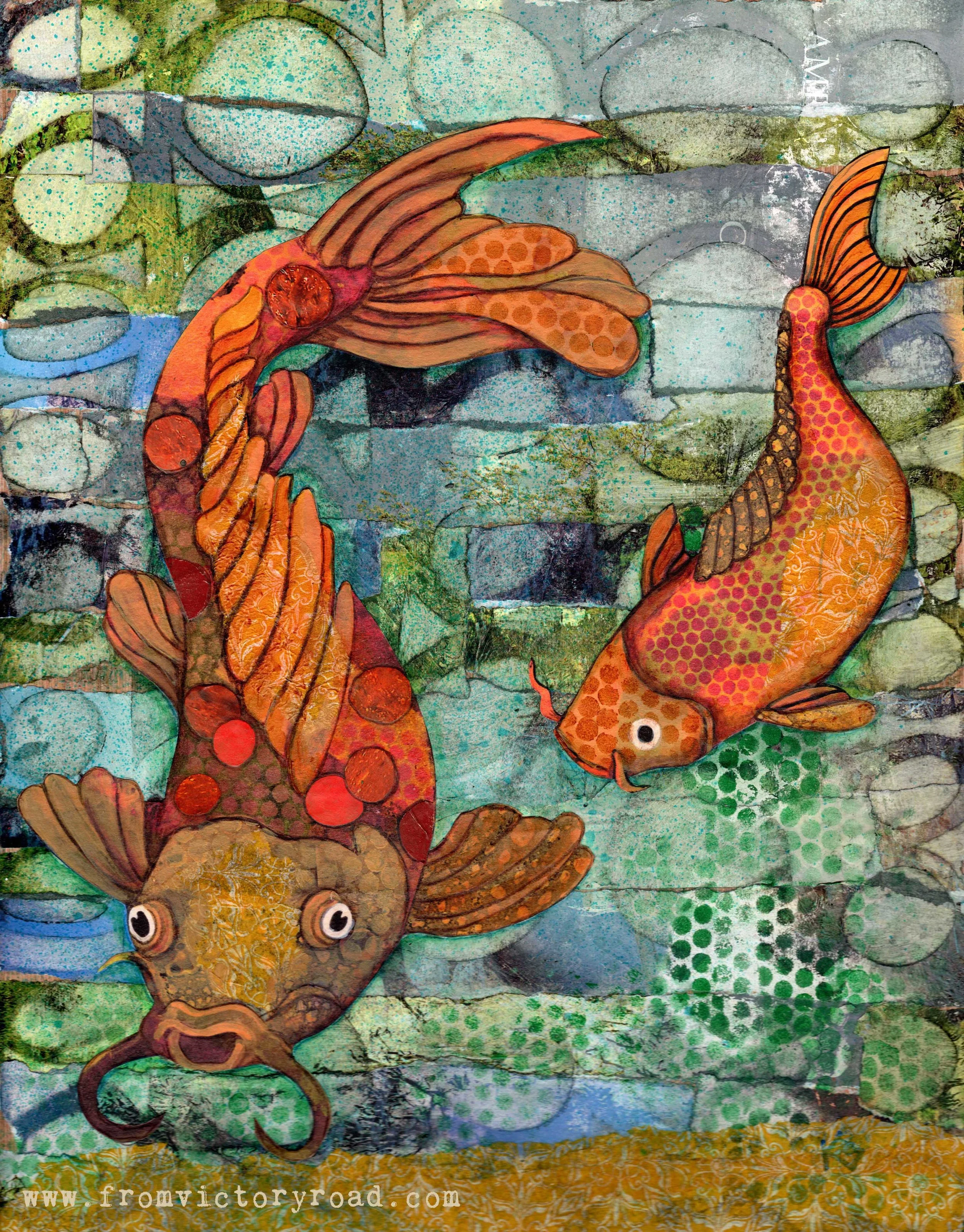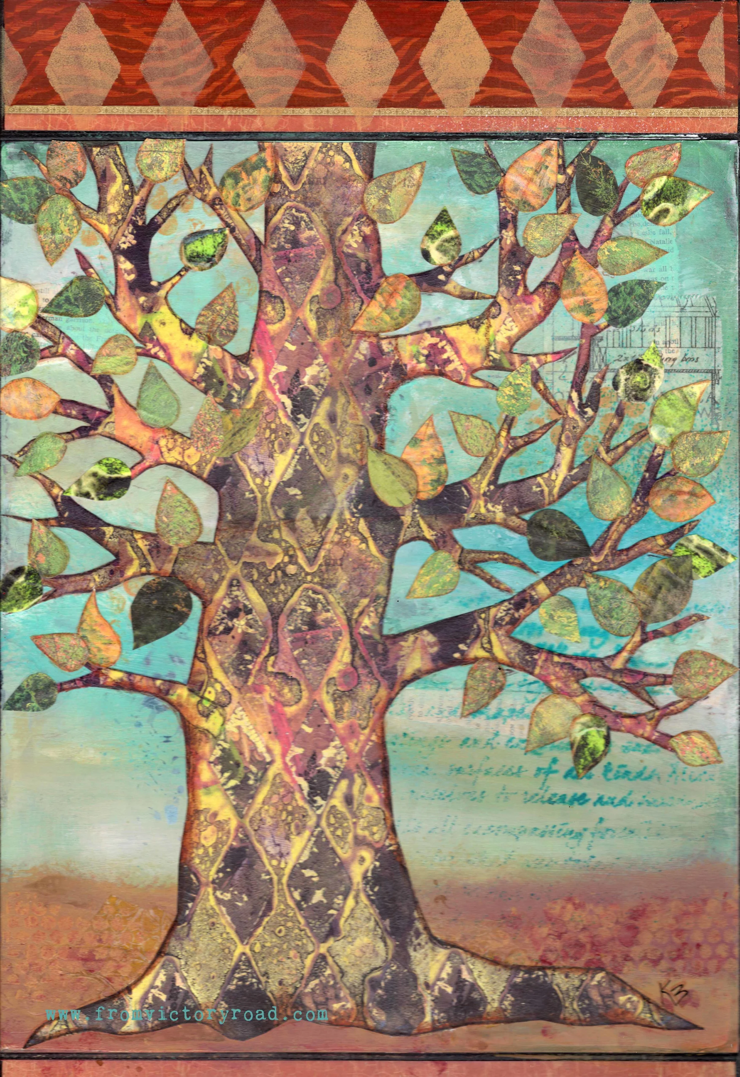 Artist Kayann Ausherman shares her techniques on how to use stenciling and embossing effects on the altered pages to add dimension to mixed media pieces.